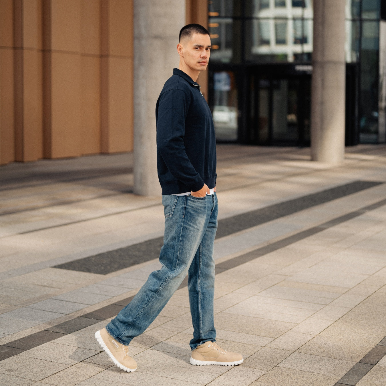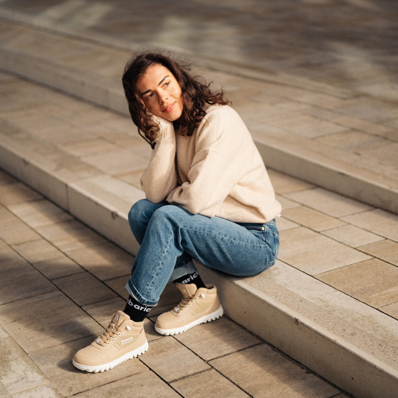 Winter ankle barefoot boots in beige that can handle rain, snow, and everyday errands in the city. Thanks to the waterproof breathable membrane, your feet stay dry, and the advanced Primaloft insulation keeps them warm. Once you try the UrbanEdge boots, you won’t want anything else for winter. Please take into account the construction of the lining, which can reduce the inner shoe space. Choosing a larger size is recommended.